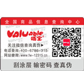 概述:消費(fèi)者在購(gòu)買已加入電碼防偽系統(tǒng)的企業(yè)所生產(chǎn)的產(chǎn)品時(shí),在產(chǎn)品的包裝上可看到電碼防偽標(biāo)簽。只要揭開標(biāo)識(shí)的表層或刮開標(biāo)識(shí)的涂層,就可以看到一由16位數(shù)字組成的密碼,此密碼是唯一的,只能使用一次,假冒者無(wú)法仿造重復(fù)使用。
